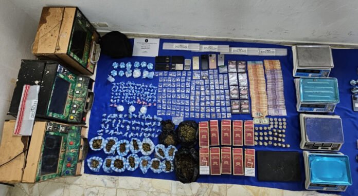 Asimismo, se recogieron 18 balanzas, 11 teléfonos móviles, cuatro máquinas de juego, varias cajas de cigarrillos, dos laptops, $34,170 pesos dominicanos y un dólar, además de otras pruebas.