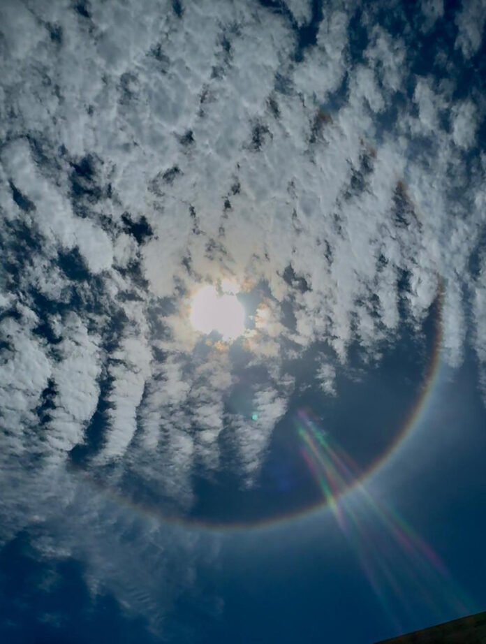 Si este lunes no te detuviste a mirar el cielo, te dejamos algunas imágenes para que puedas apreciar el halo solar.